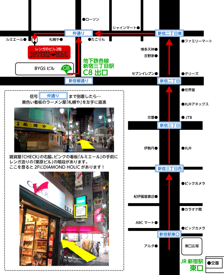 丸ノ内線・副都心線・都営新宿線「新宿三丁目駅」(C8)出口より徒歩3分